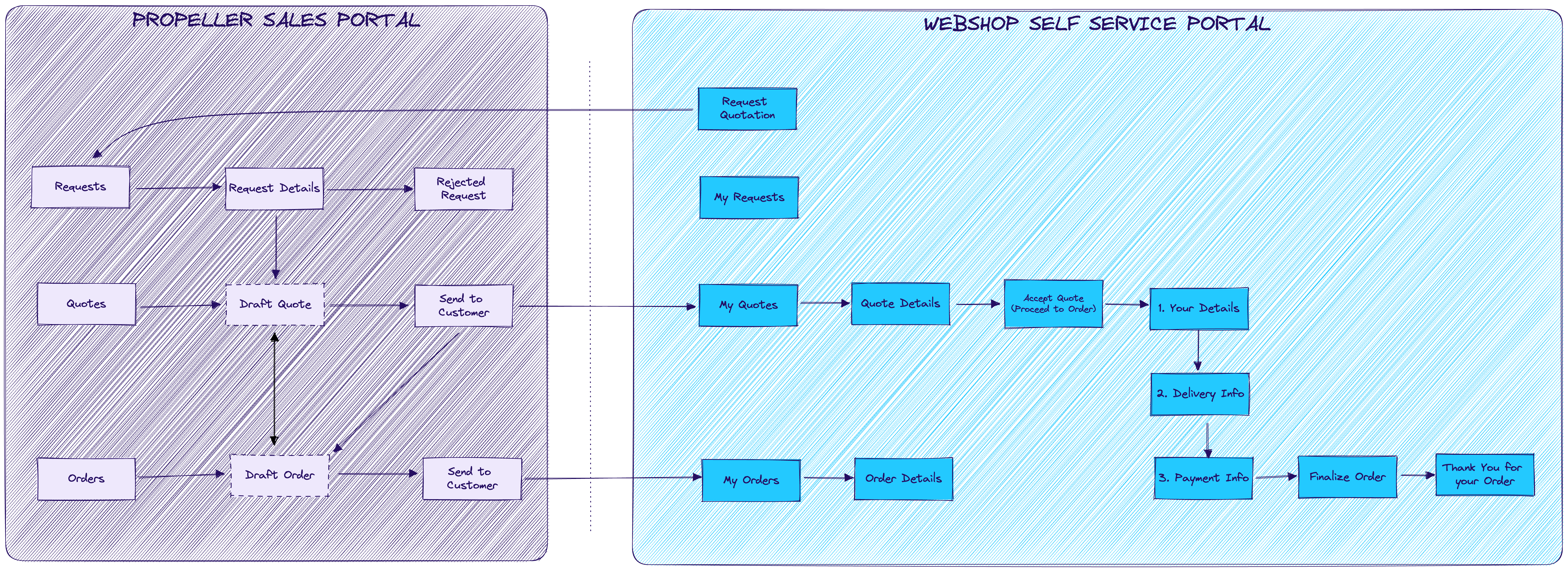 Customers can make a Quotation Request from the checkout within the webshop. The flow follows the same pattern as making a standard order, but the details are only passed into the Sales Portal to be reviewed by the Sales team.