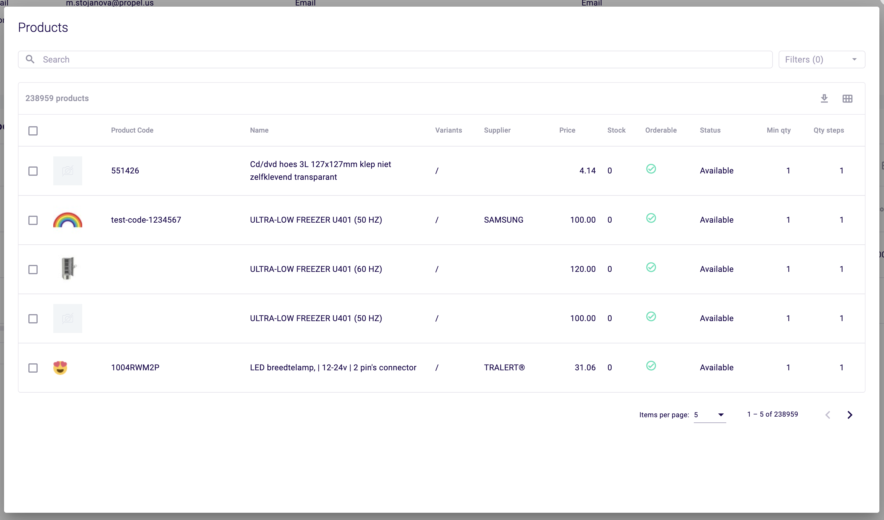 You can download a .csv with the visible product data or modify the visible columns for the product table using the download or table icons respectively.