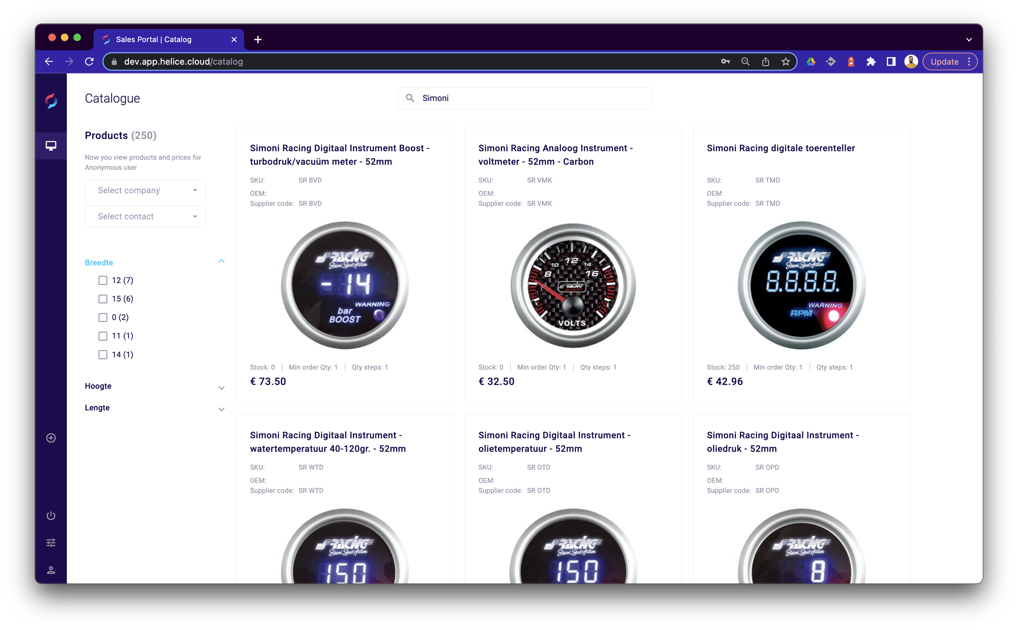 The Product List provides the core functionality needed to create your Quotation / Order.